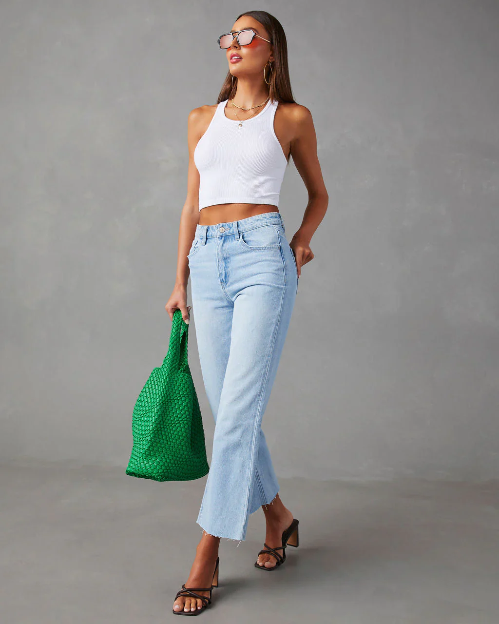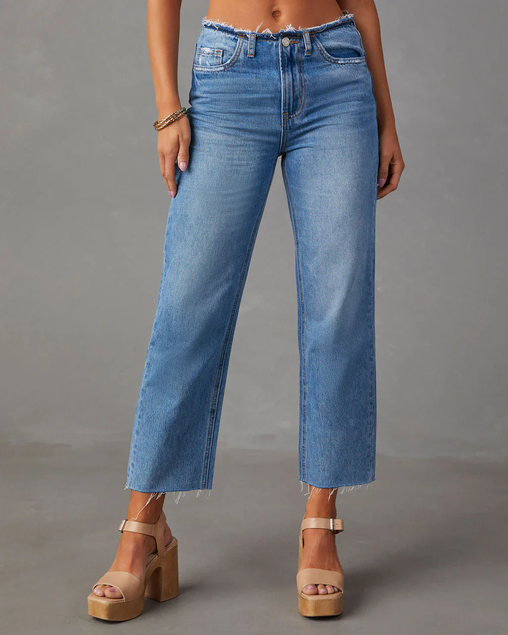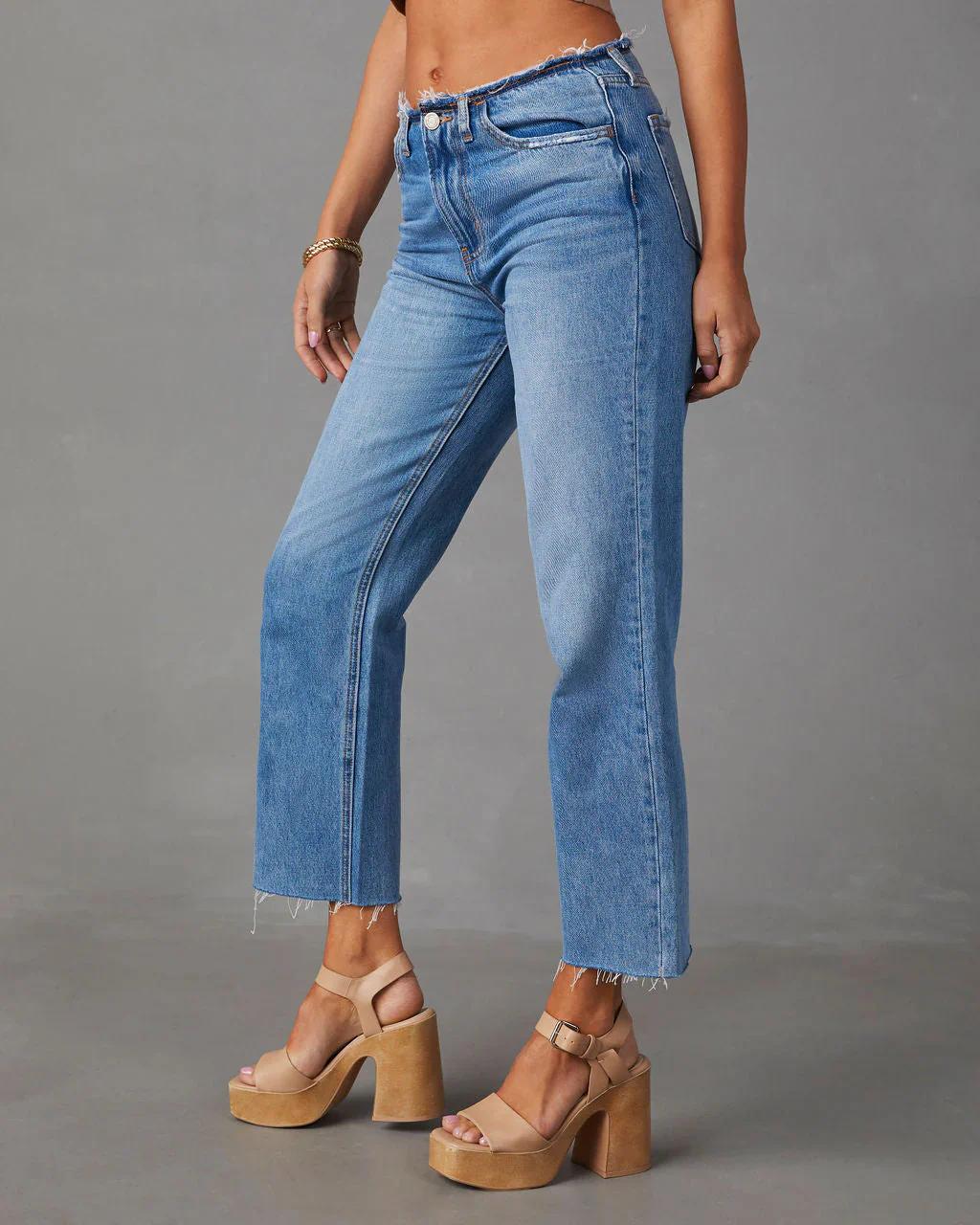 Shelli Mid Rise Raw Edge Cropped Jeans