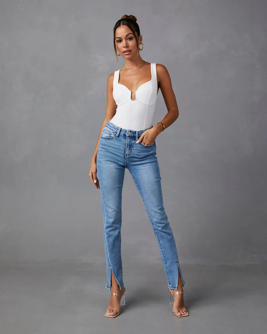 Eliza High Rise Stretch Bootcut Split Hem Jeans