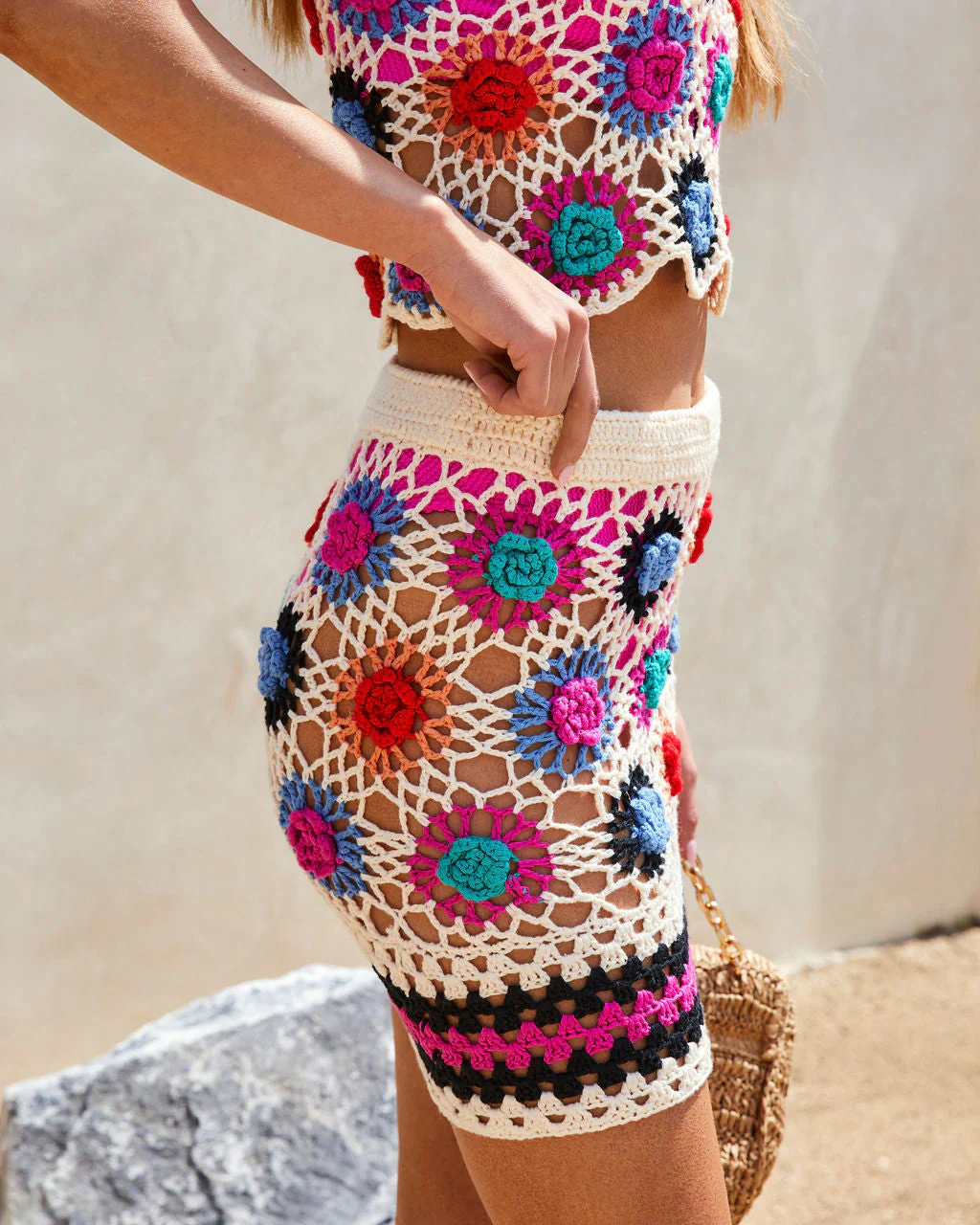 Desert Sands Crochet Knit Cover Up Mini Skirt