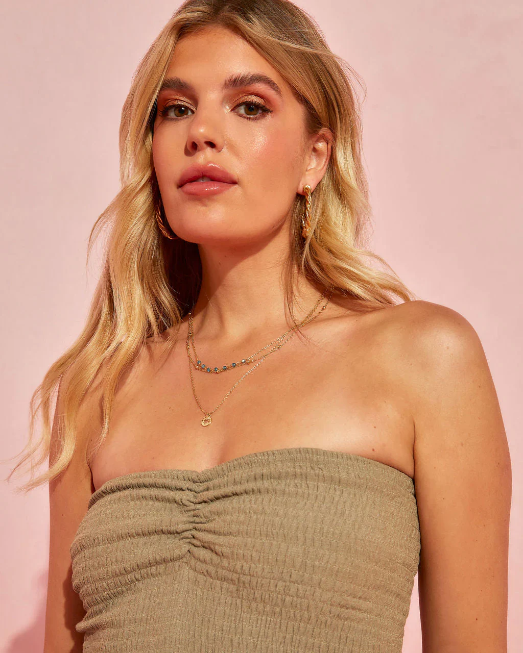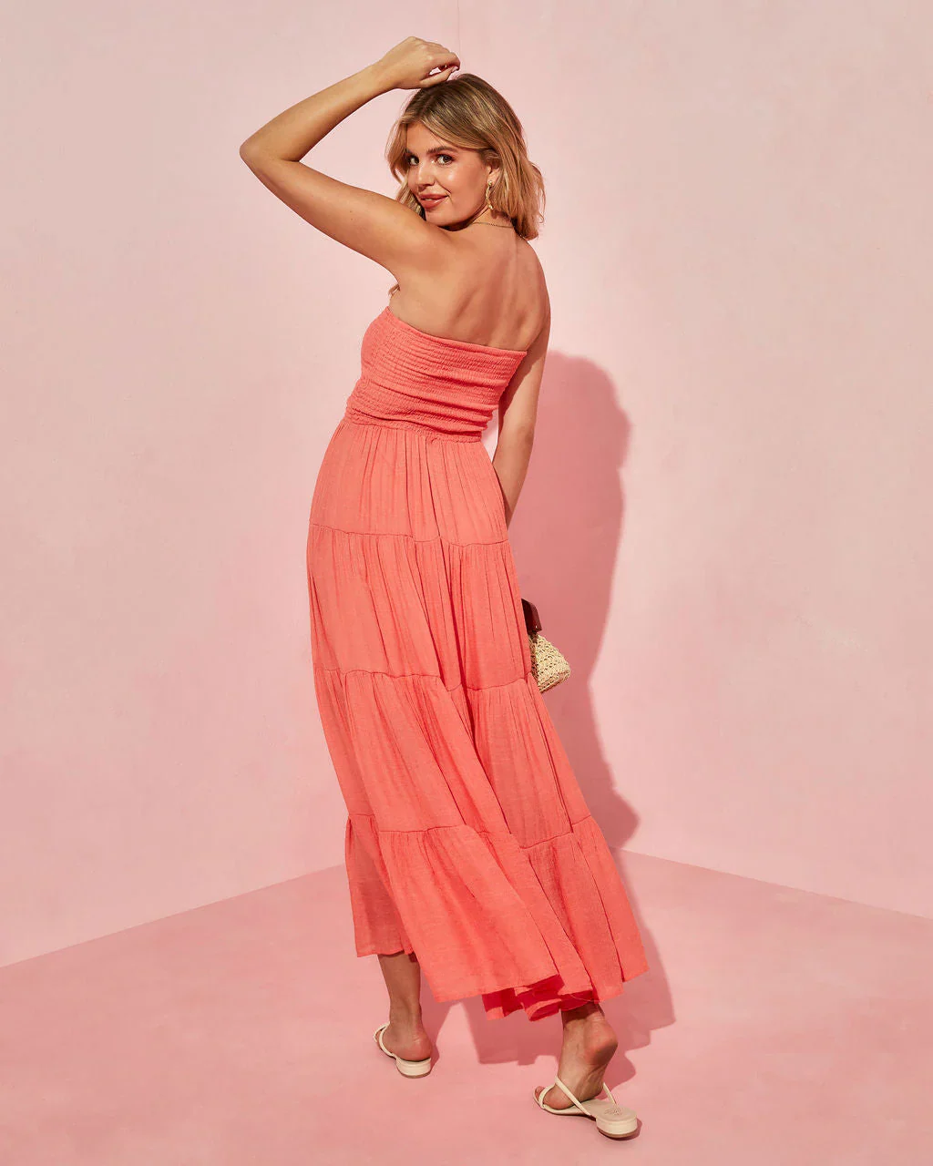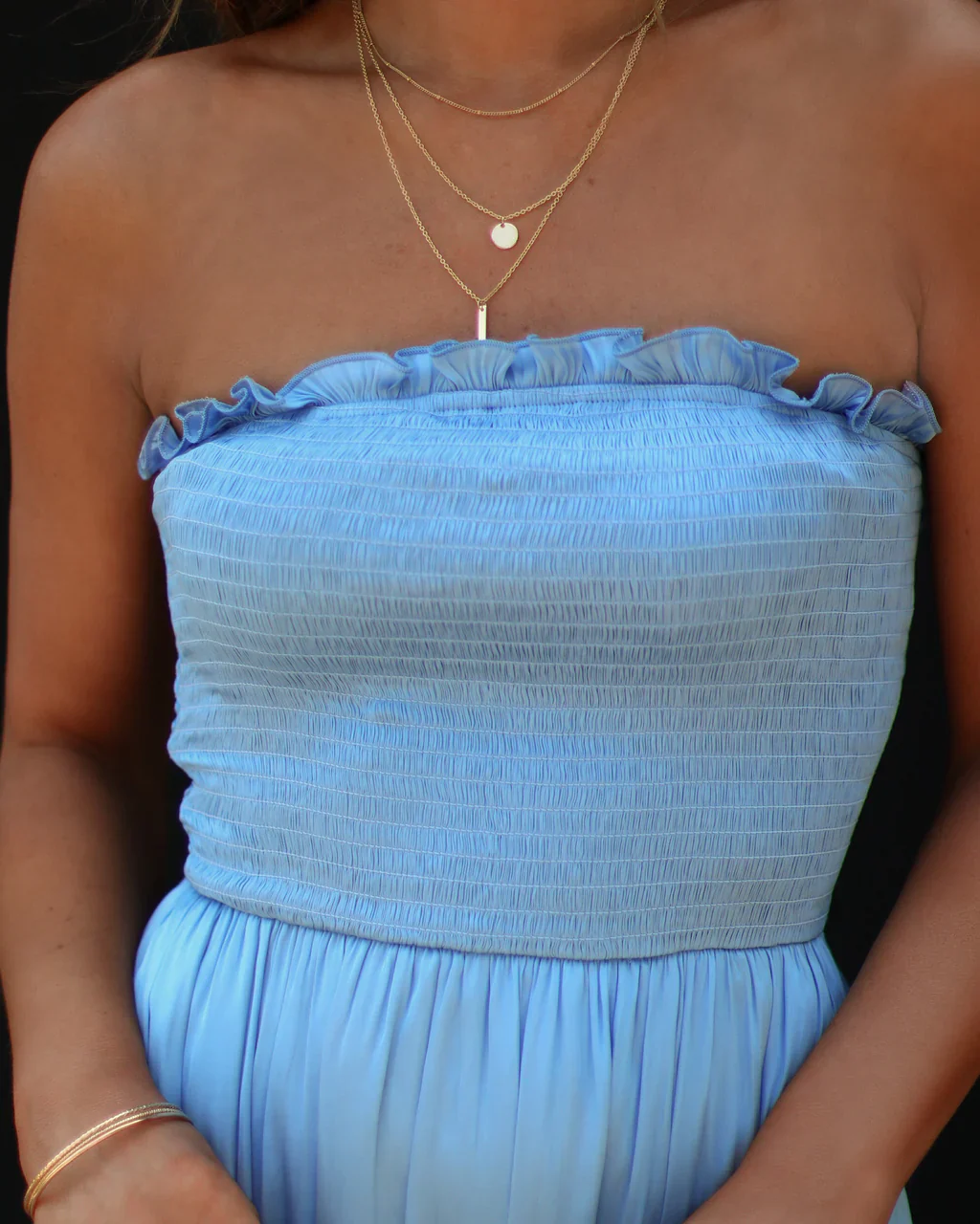 Rosalina Strapless Smocked Tiered Maxi Dress