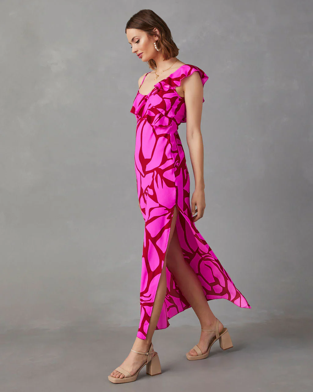 Vilma Ruffle Trim Floral Maxi Dress