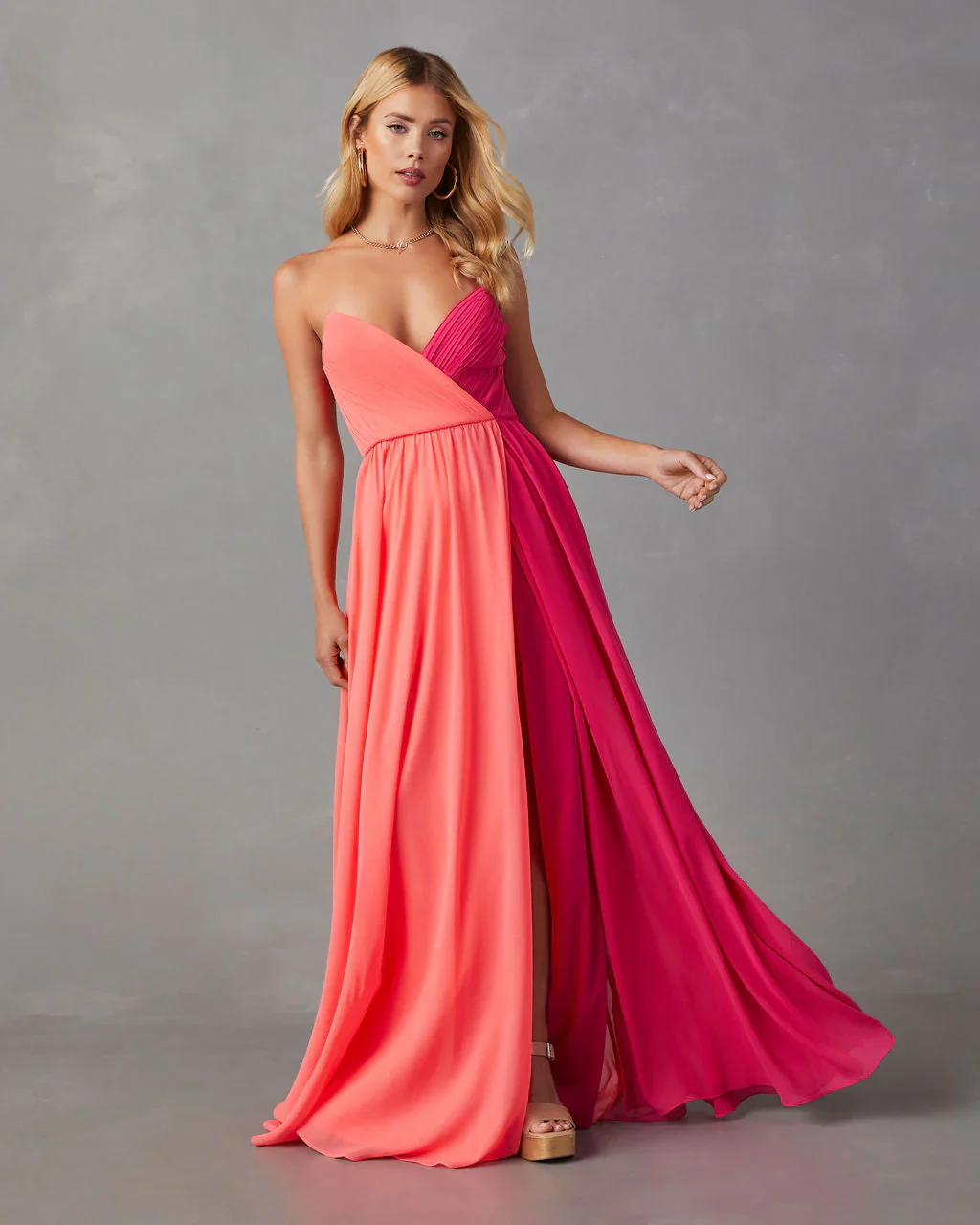 Summer Sorbet Strapless Colorblock Maxi Dress