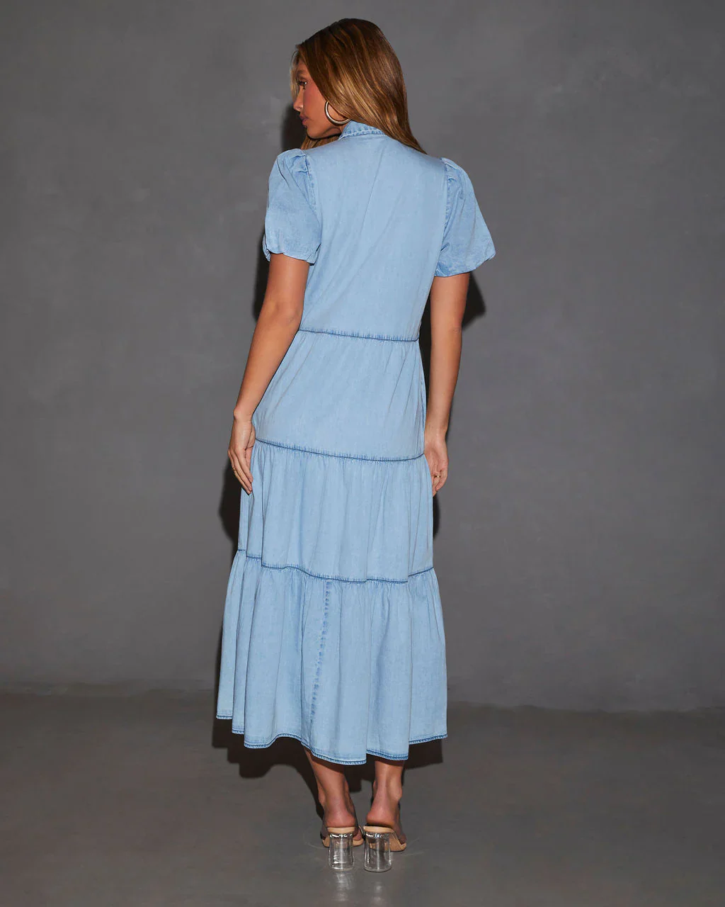 Laurie Puff Sleeve Tiered Button Up Dress