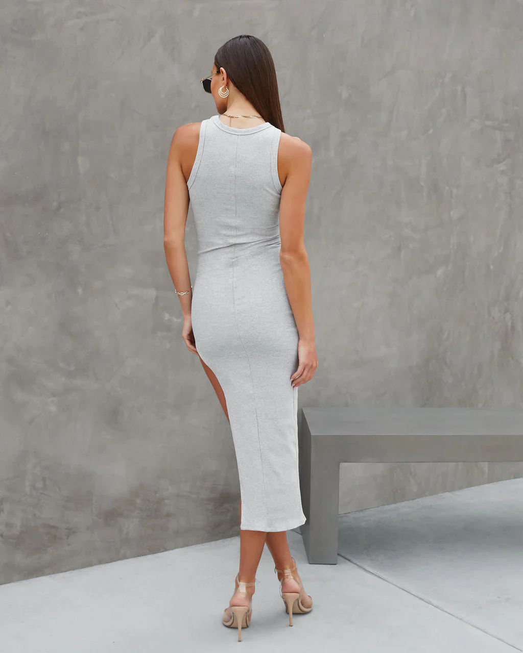 Cause A Sensation Ribbed Side Slit Maxi Dress