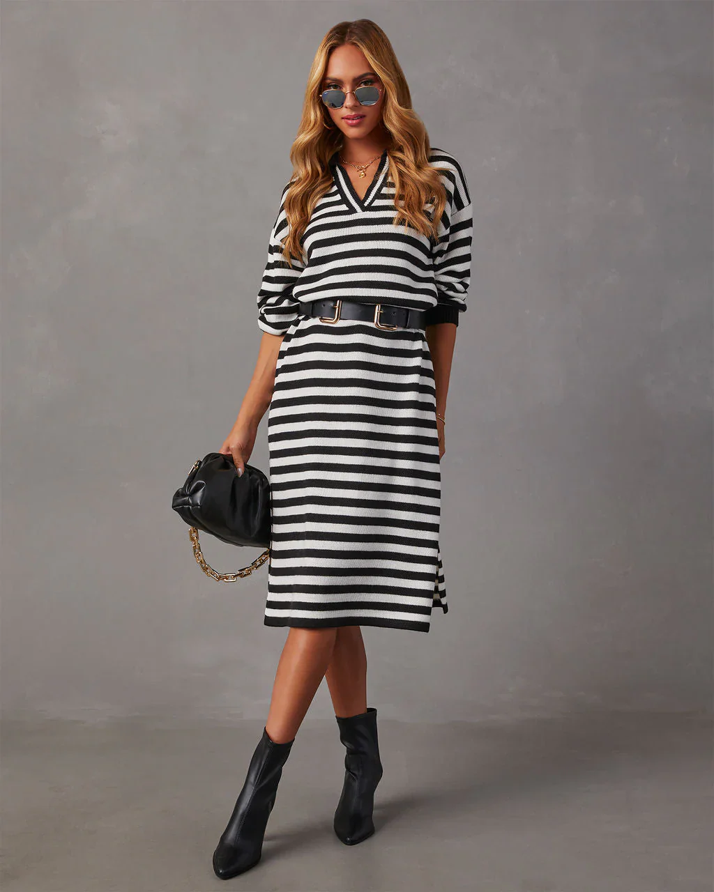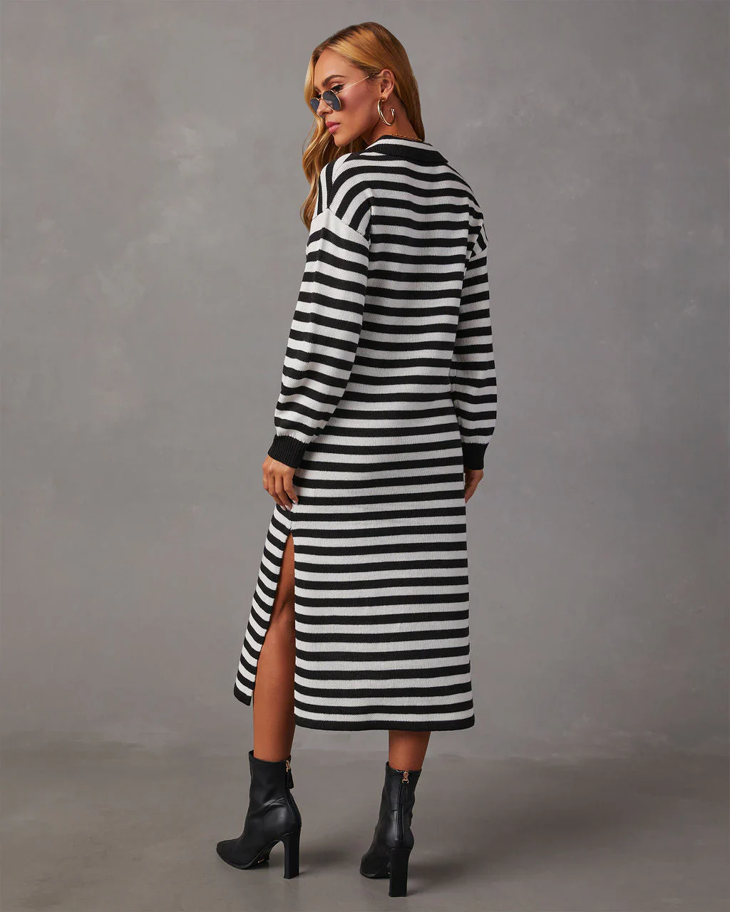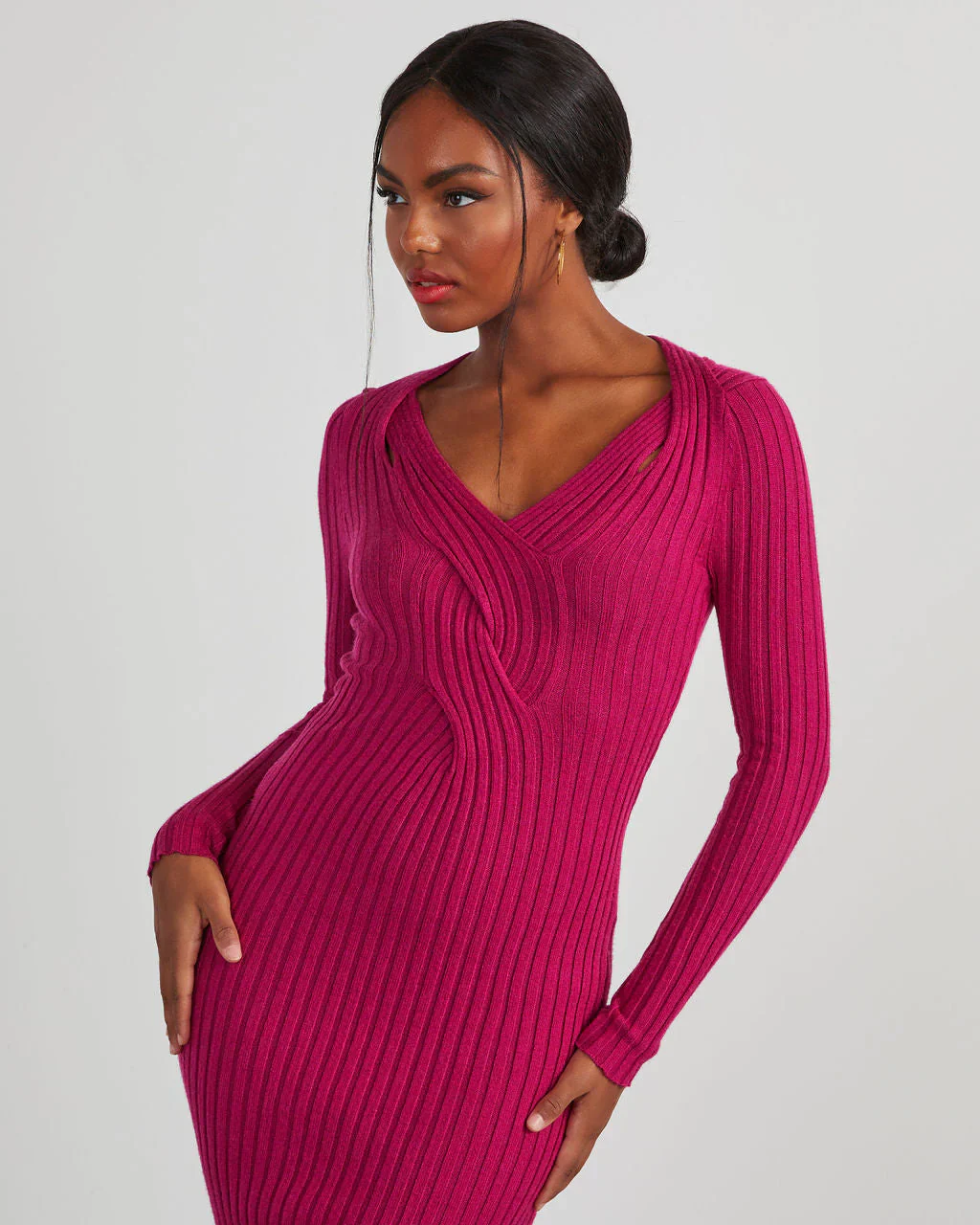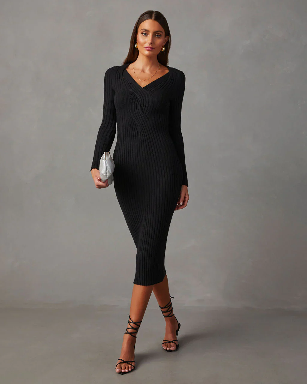 Lia Asymmetrical Hem Tie Waist Midi Sweater Dress