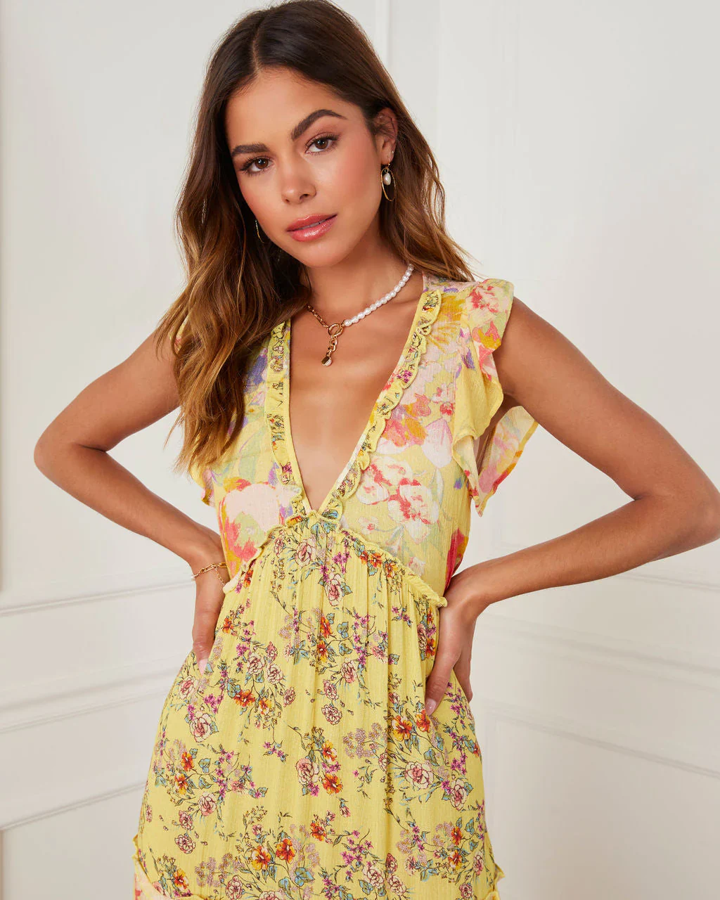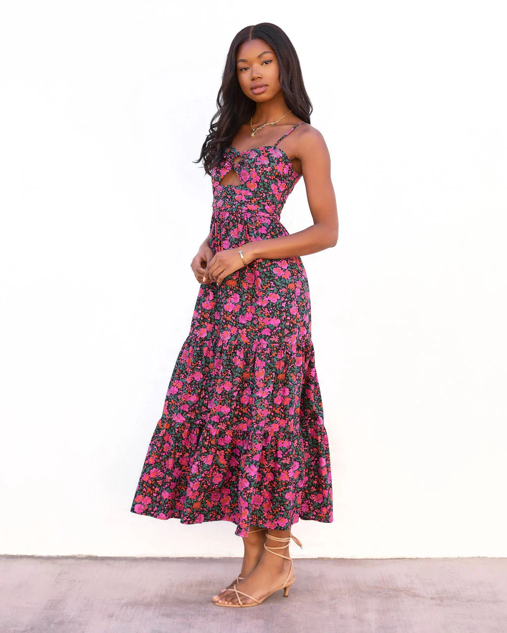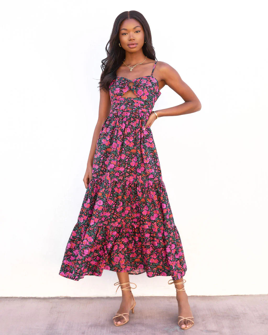 La Vida Strapless Corset Floral Tiered Midi Dress