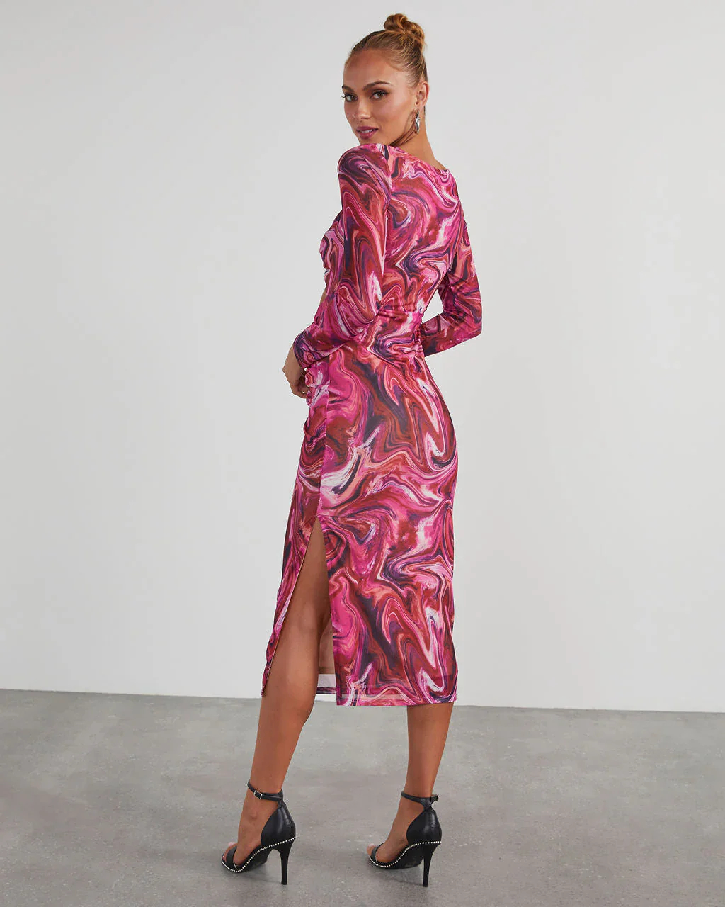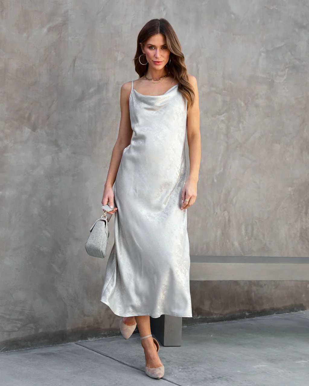 Mystic Queen Cowl Neck High Sheen Midi Dress