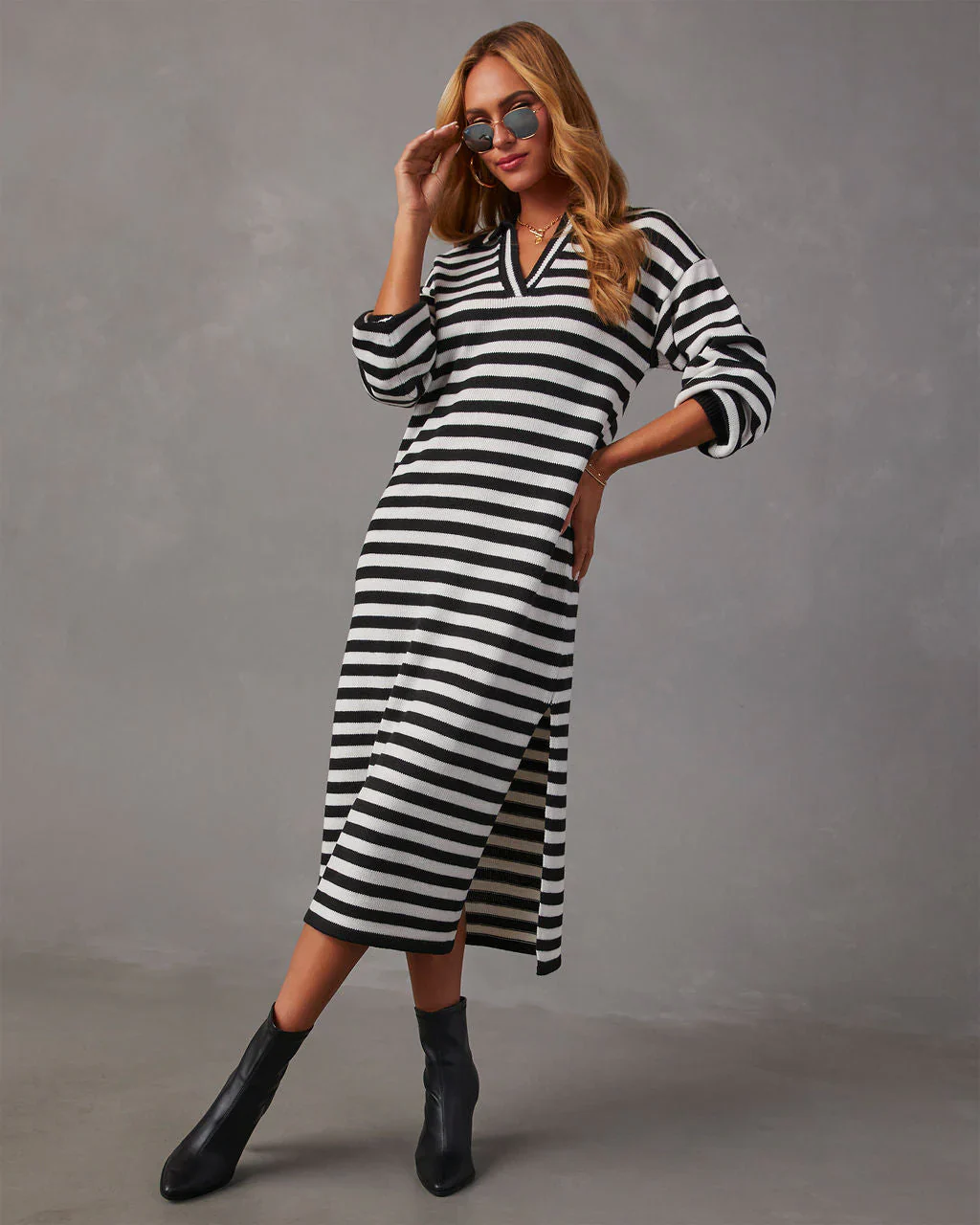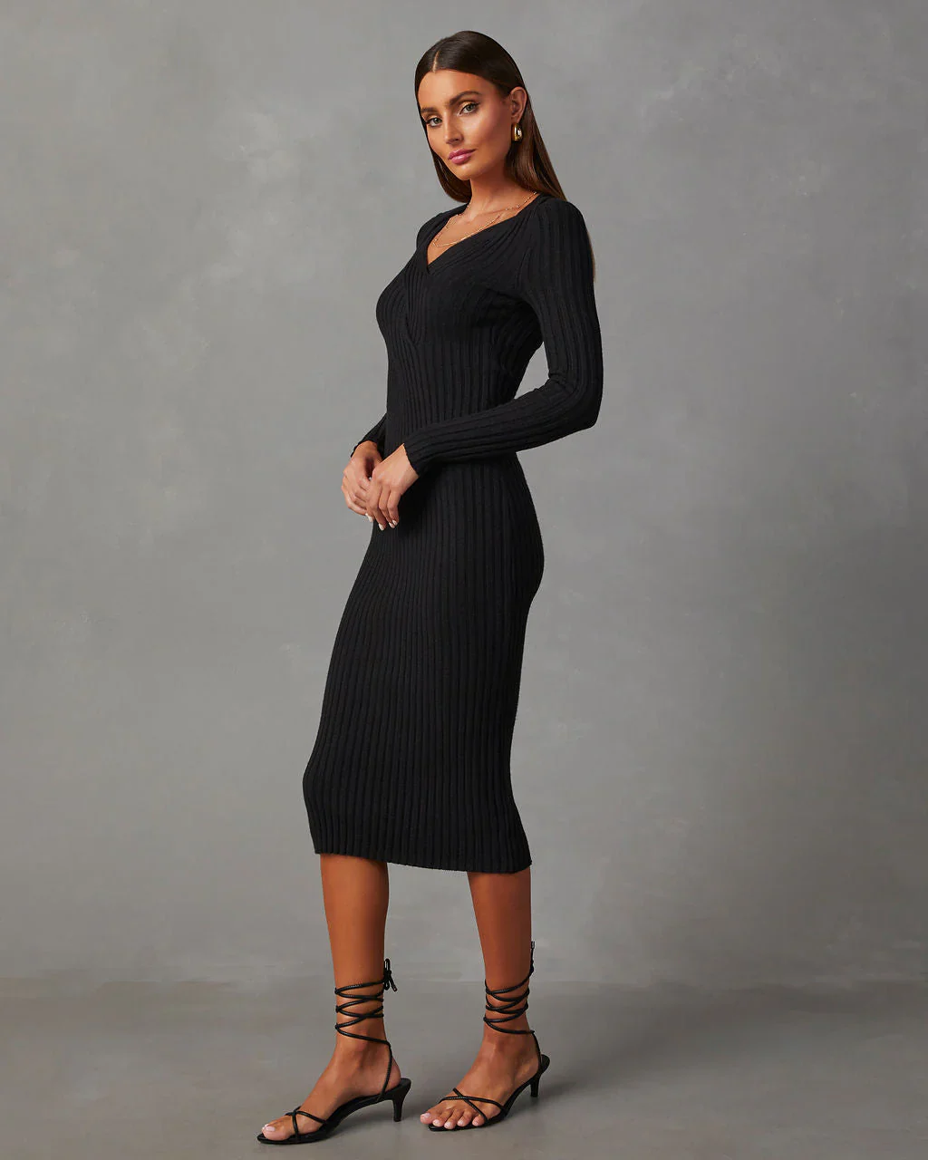 Lorena Cotton Blend Ribbed Side Slit Midi Dress