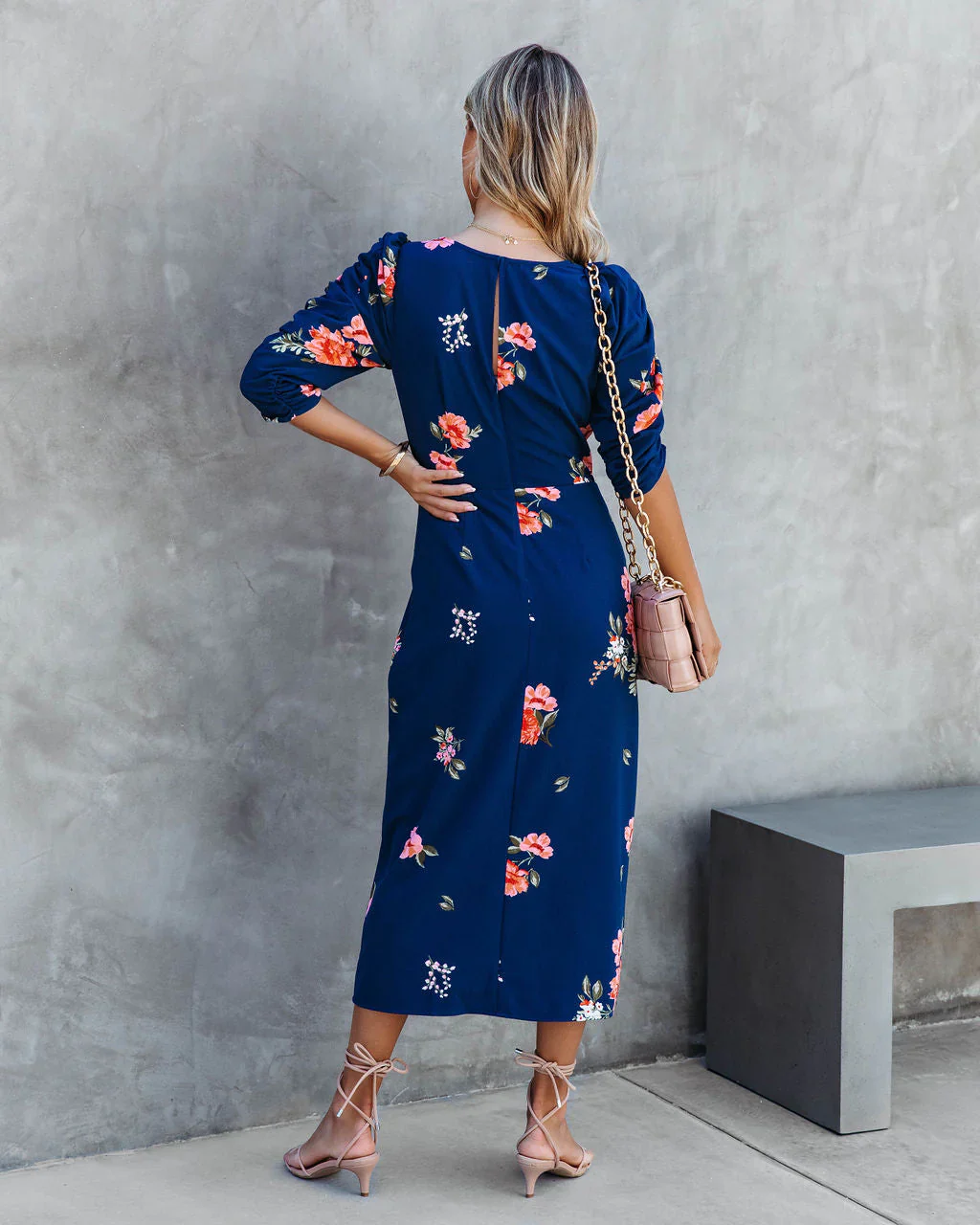 Life Is Peachy Floral Ruched Puff Sleeve Midi Dress