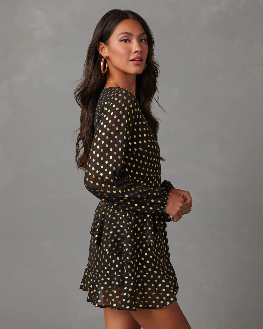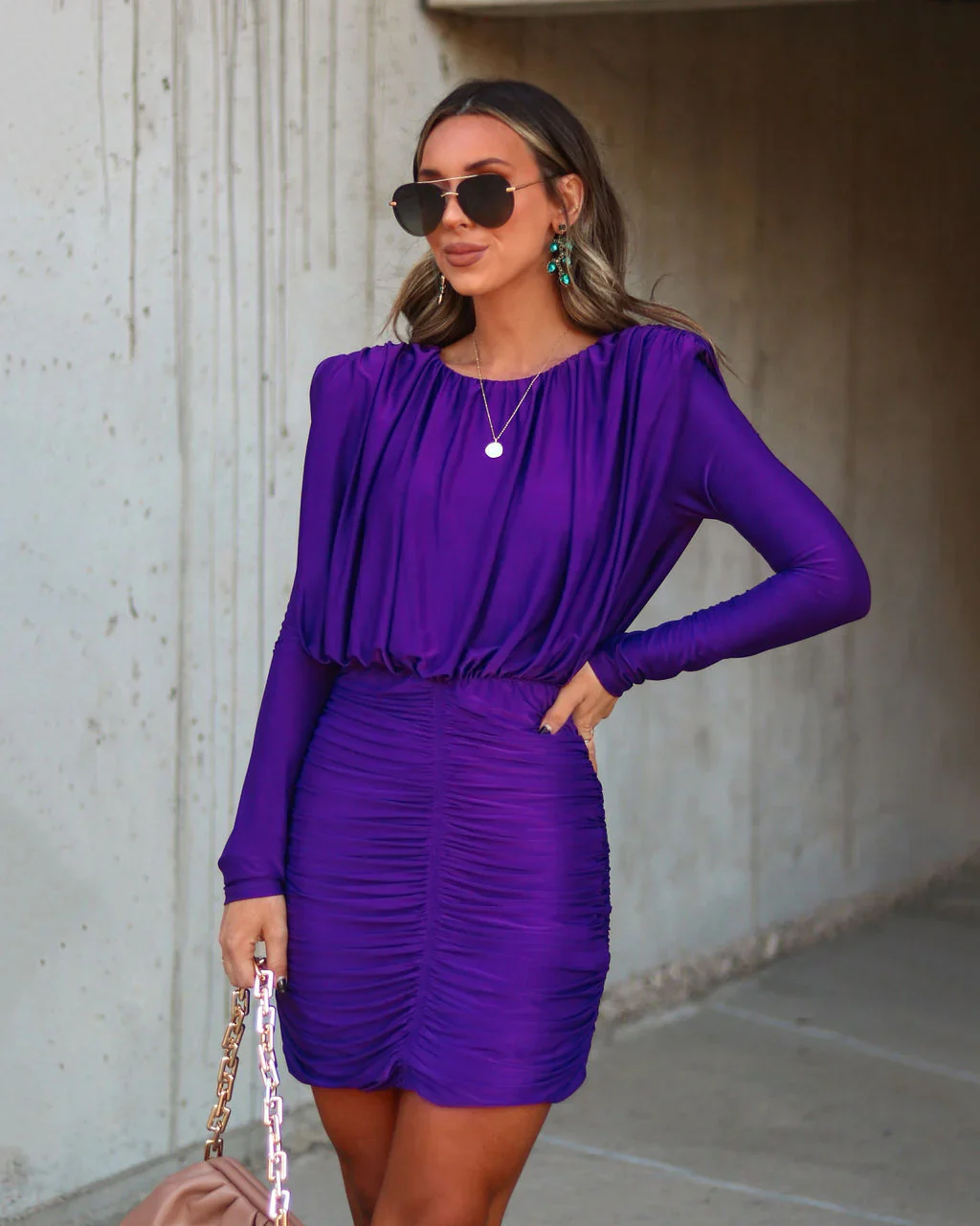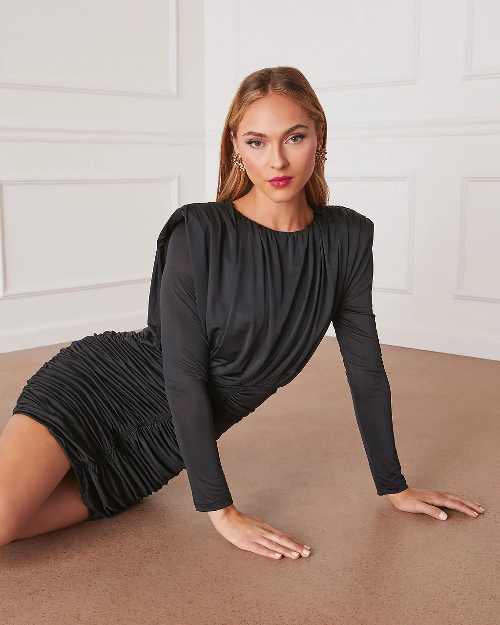 Chance To Dance Padded Shoulder Ruched Mini Dress