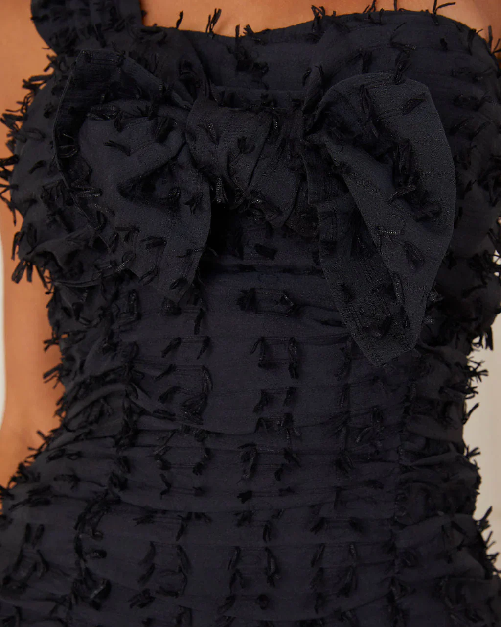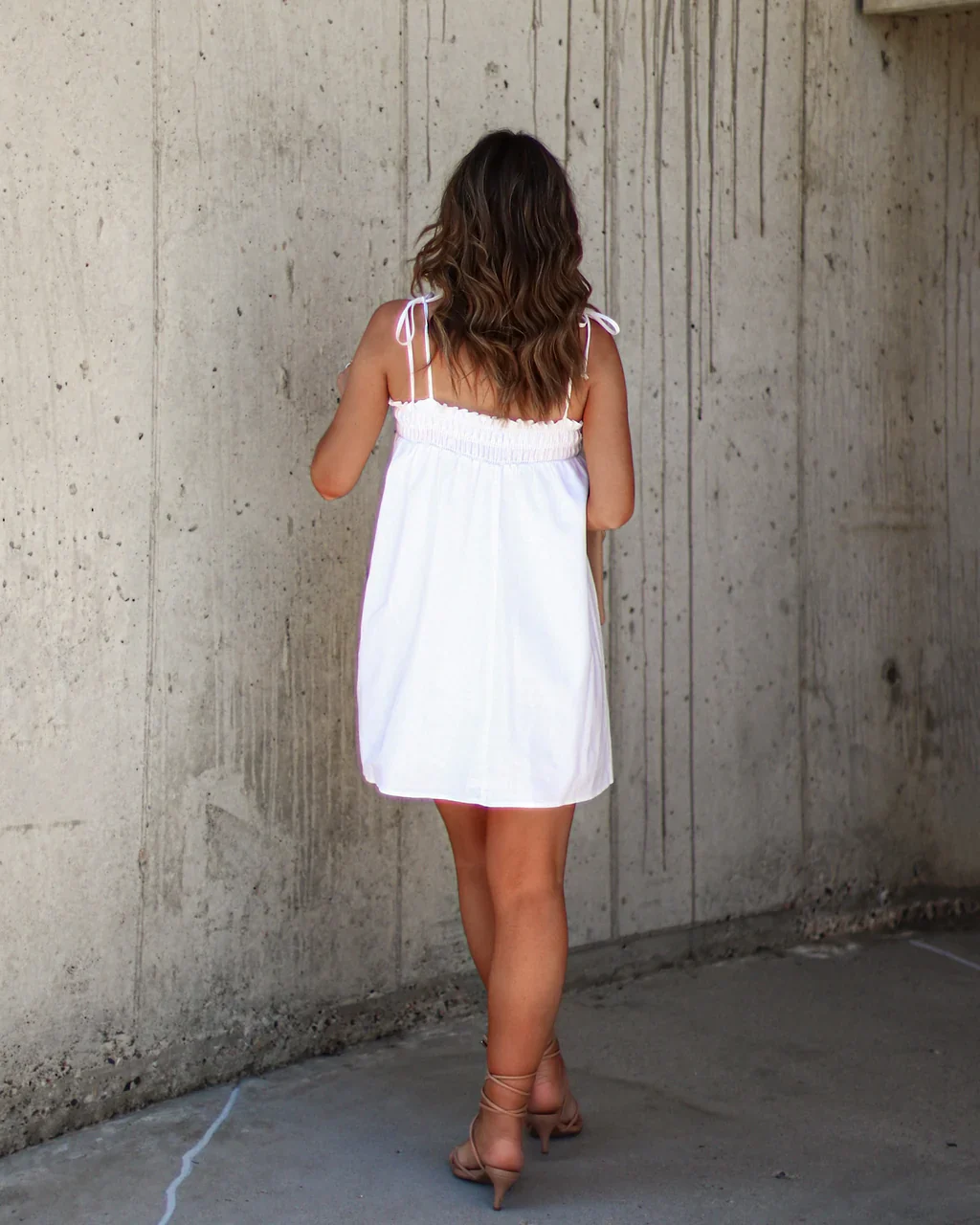 Jessy Smocked Pocketed Shoulder Tie Mini Dress