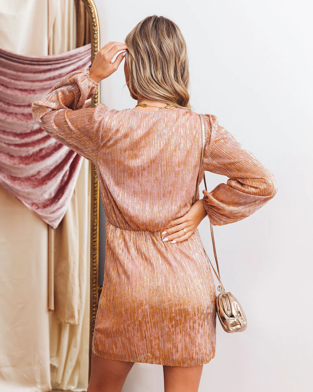 Giuliana Twisted Front Plisse Metallic Mini Dress