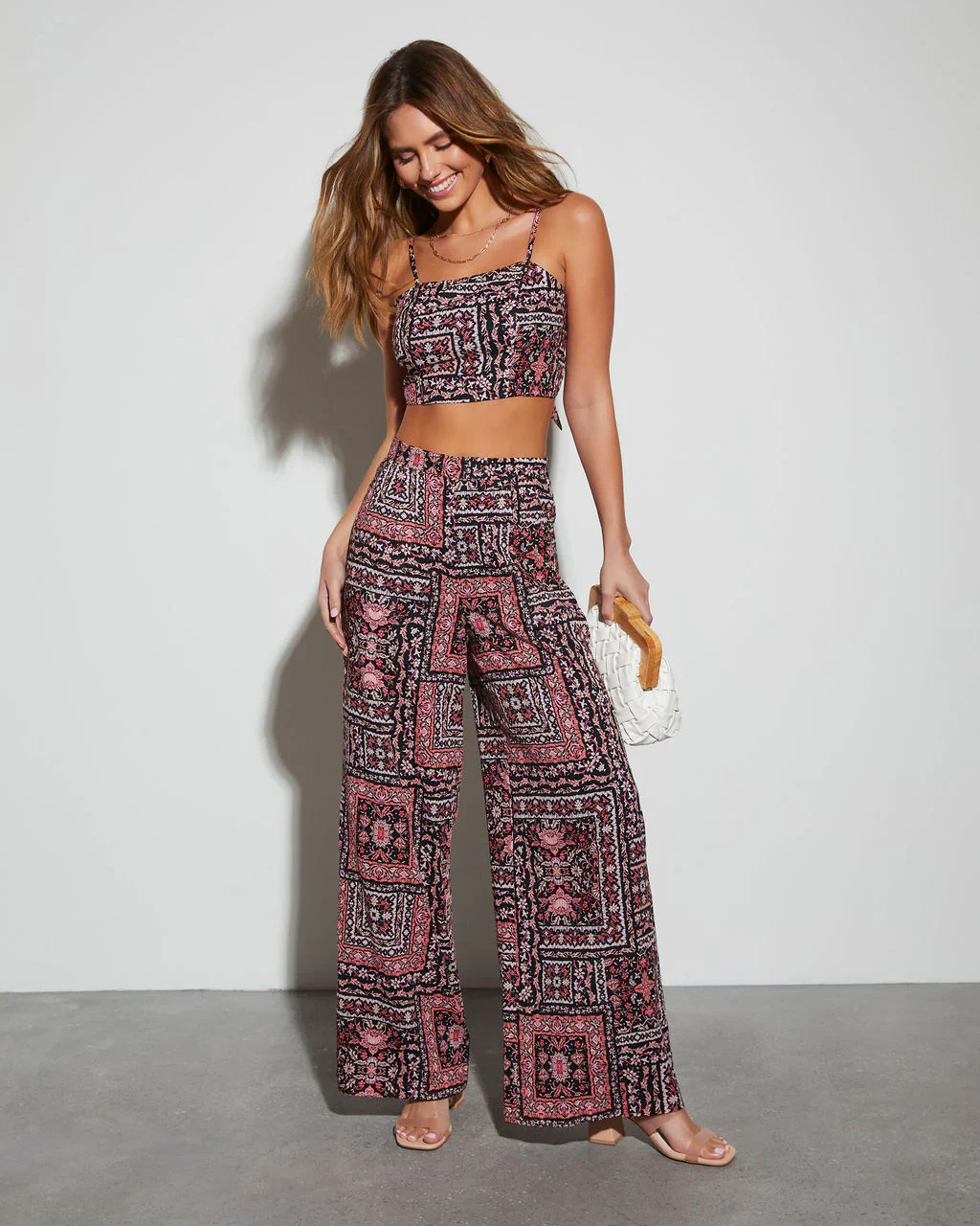 Belize Printed Satin Low Back Tie Waist Maxi Dress