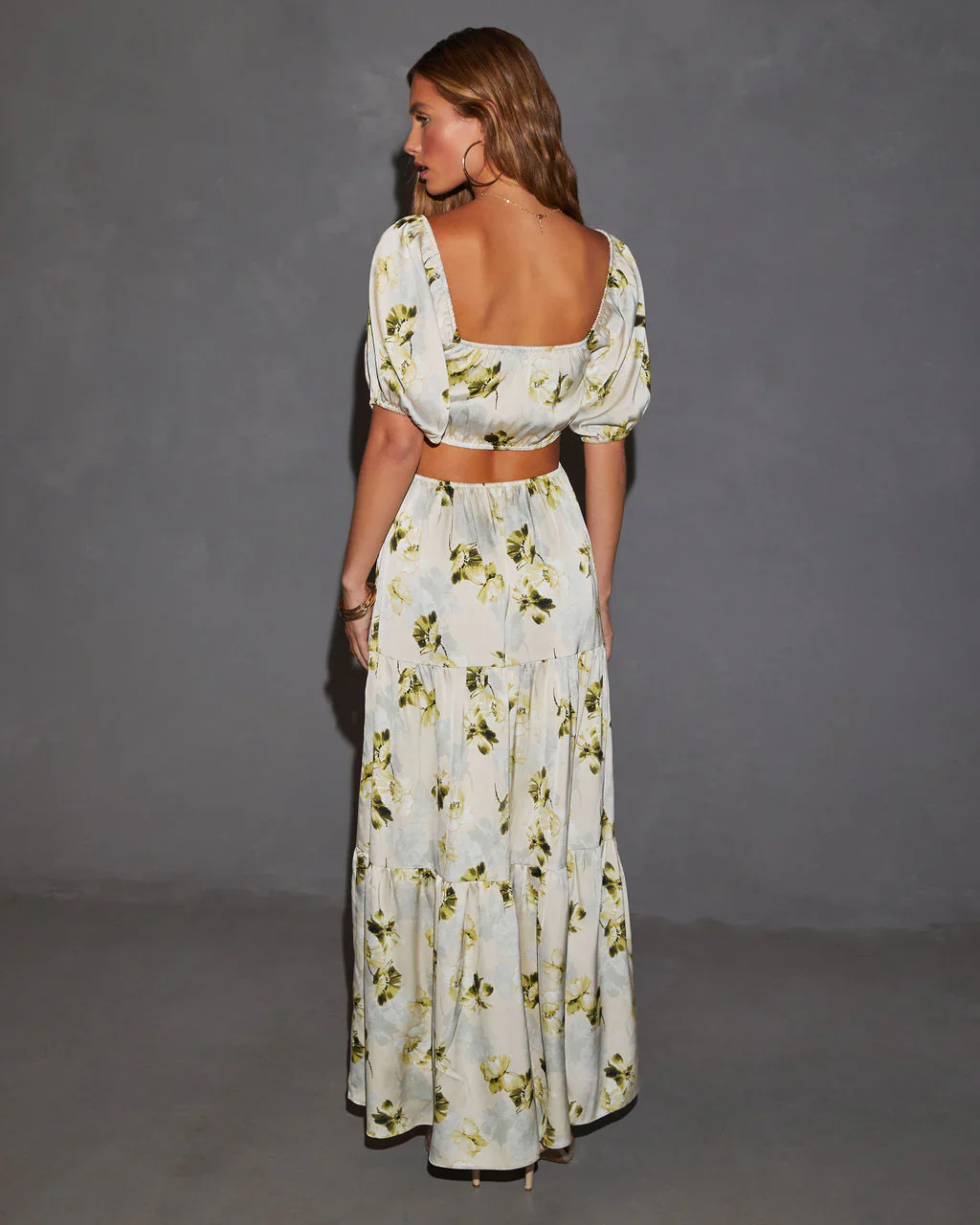 Cambria Satin Floral Puff Sleeve Maxi Dress
