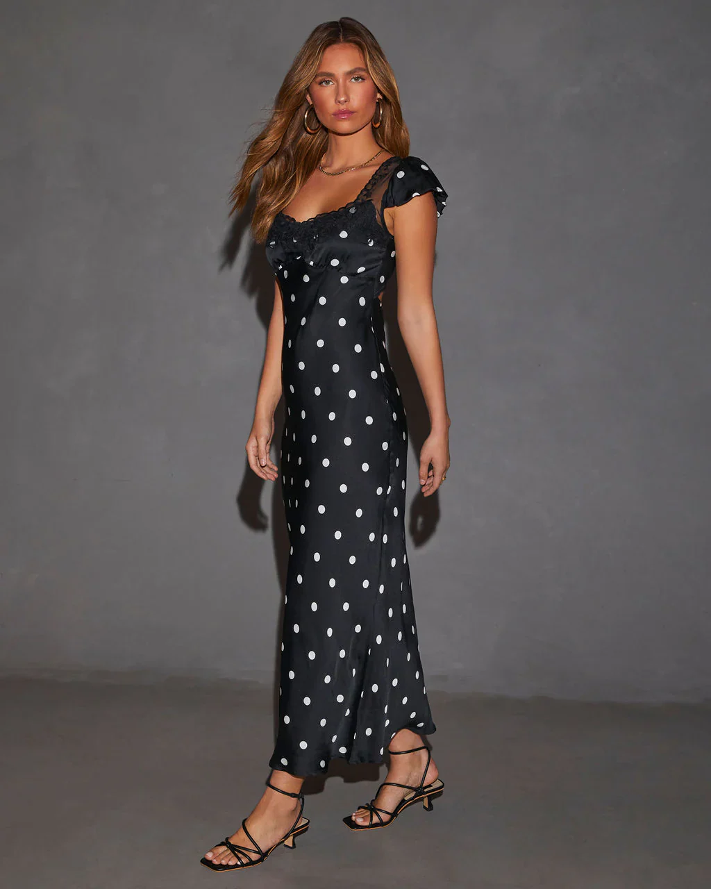 Bianca Flutter Sleeve Lace Trim Maxi Dress