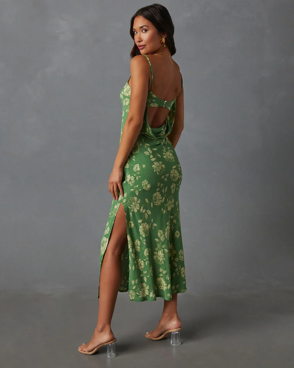 Estella Cowl Neck Tie Waist Printed Maxi Dress
