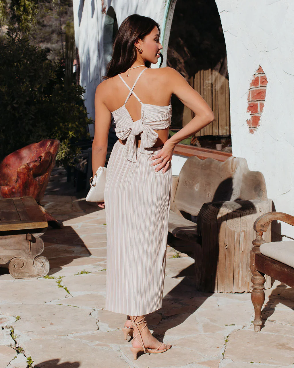 Hollywood Dreams Pleated Tie Back Midi Dress