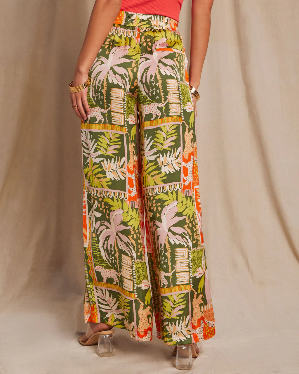 Ibiza Pocketed Satin Tropical Wide Leg Pant
