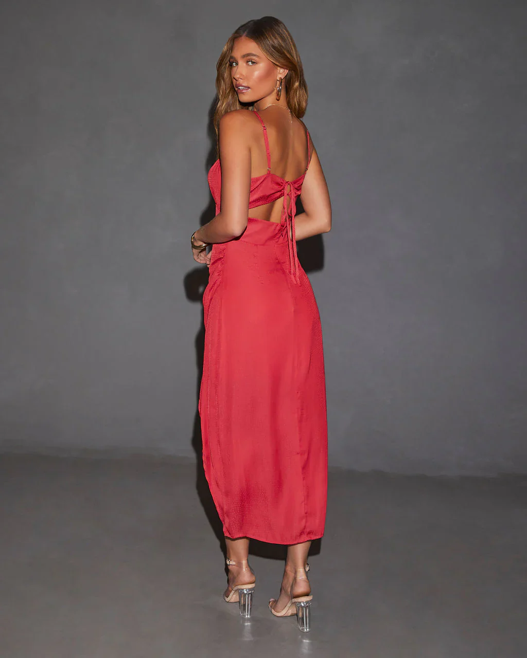 Minnie Asymmetrical Polka Dot Slip Midi Dress