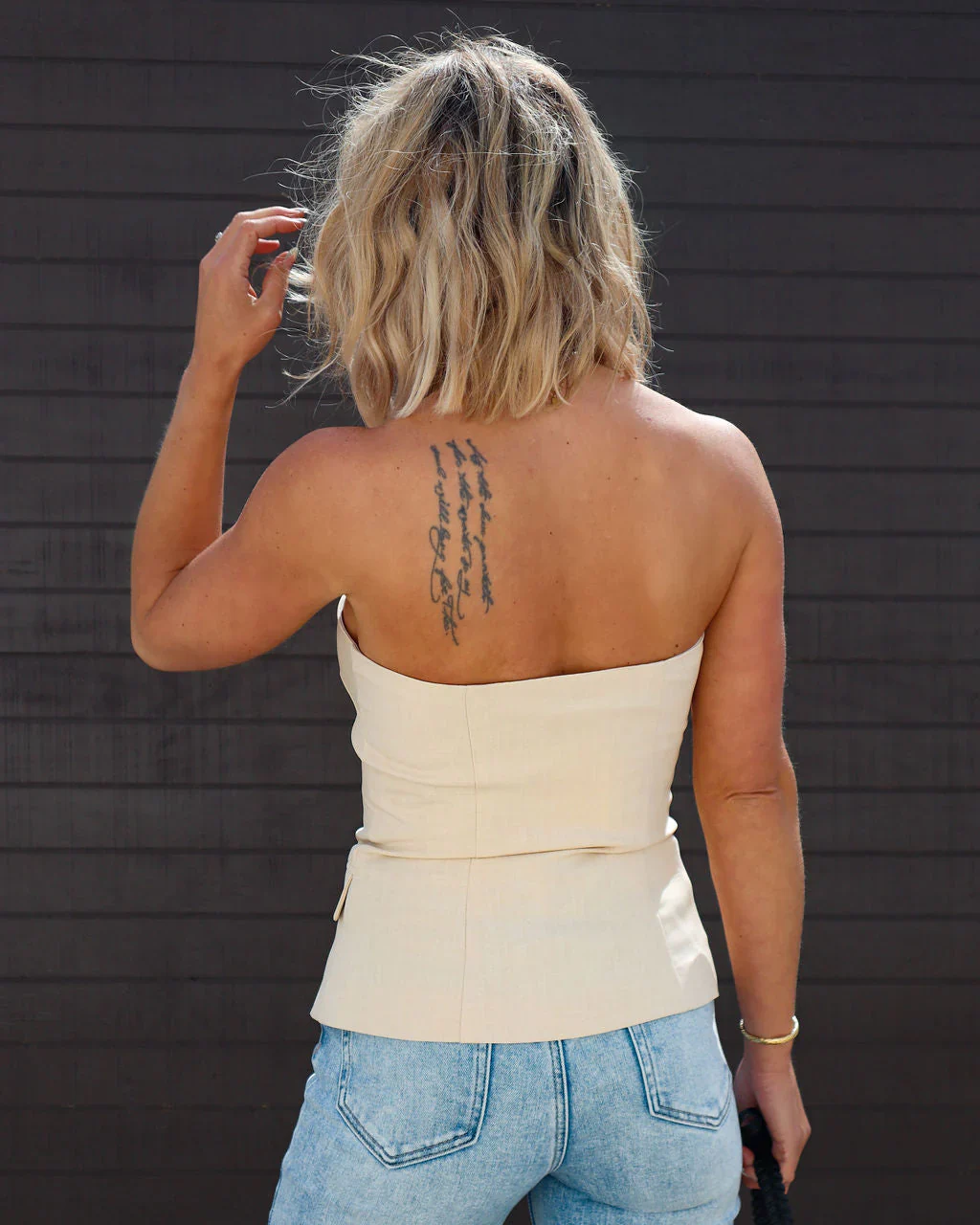 Miller Strapless Button Down Top