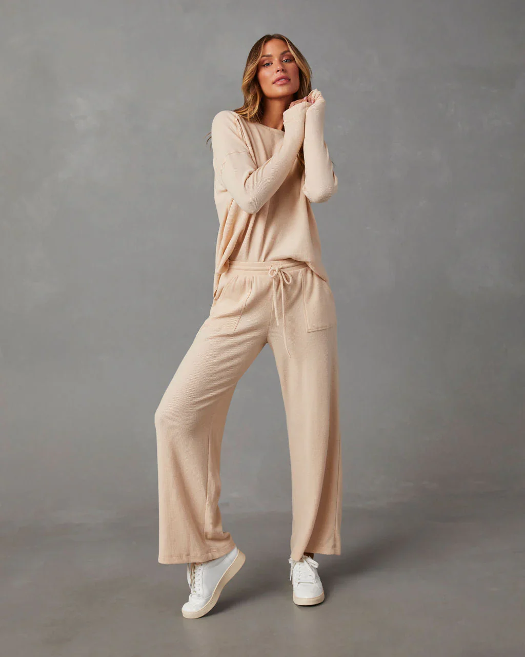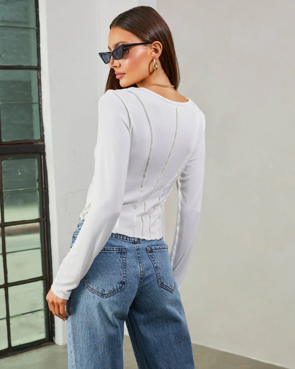 Mestara Ribbed Knit Long Sleeve Top
