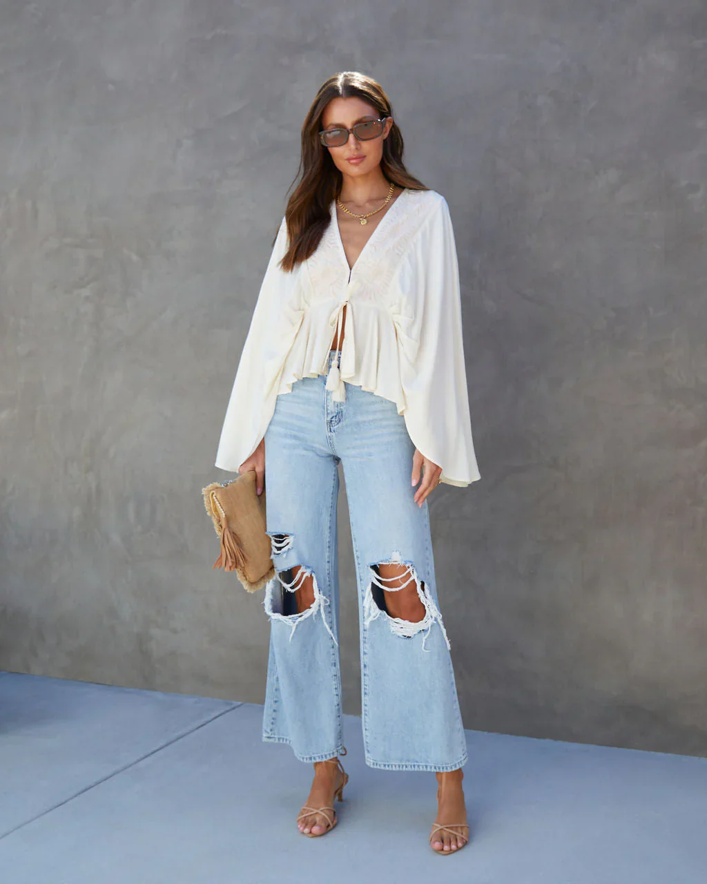 Noelle Embroidered Cape Sleeve Top
