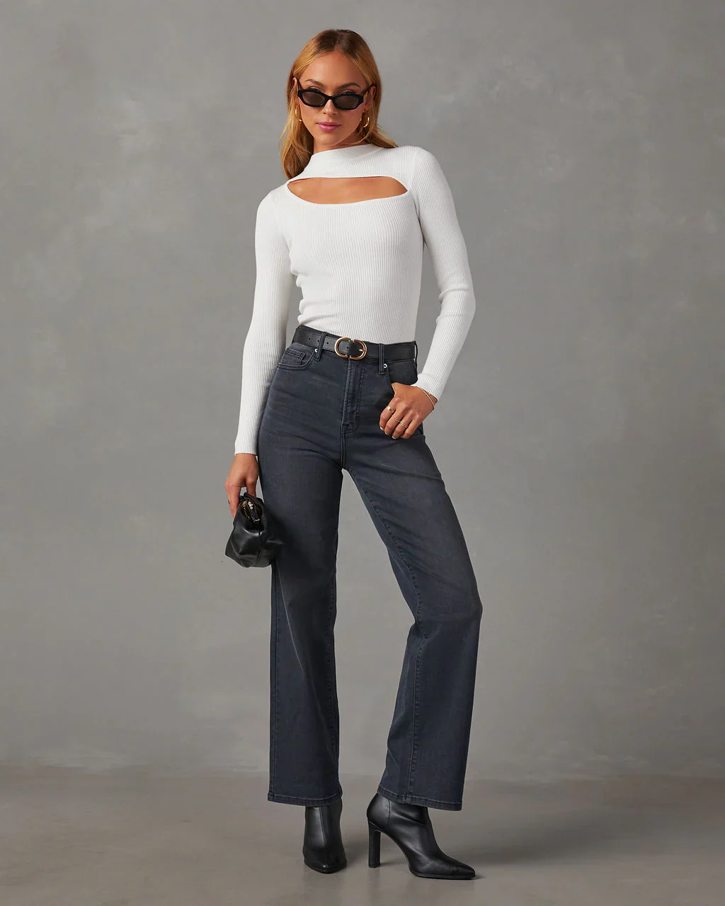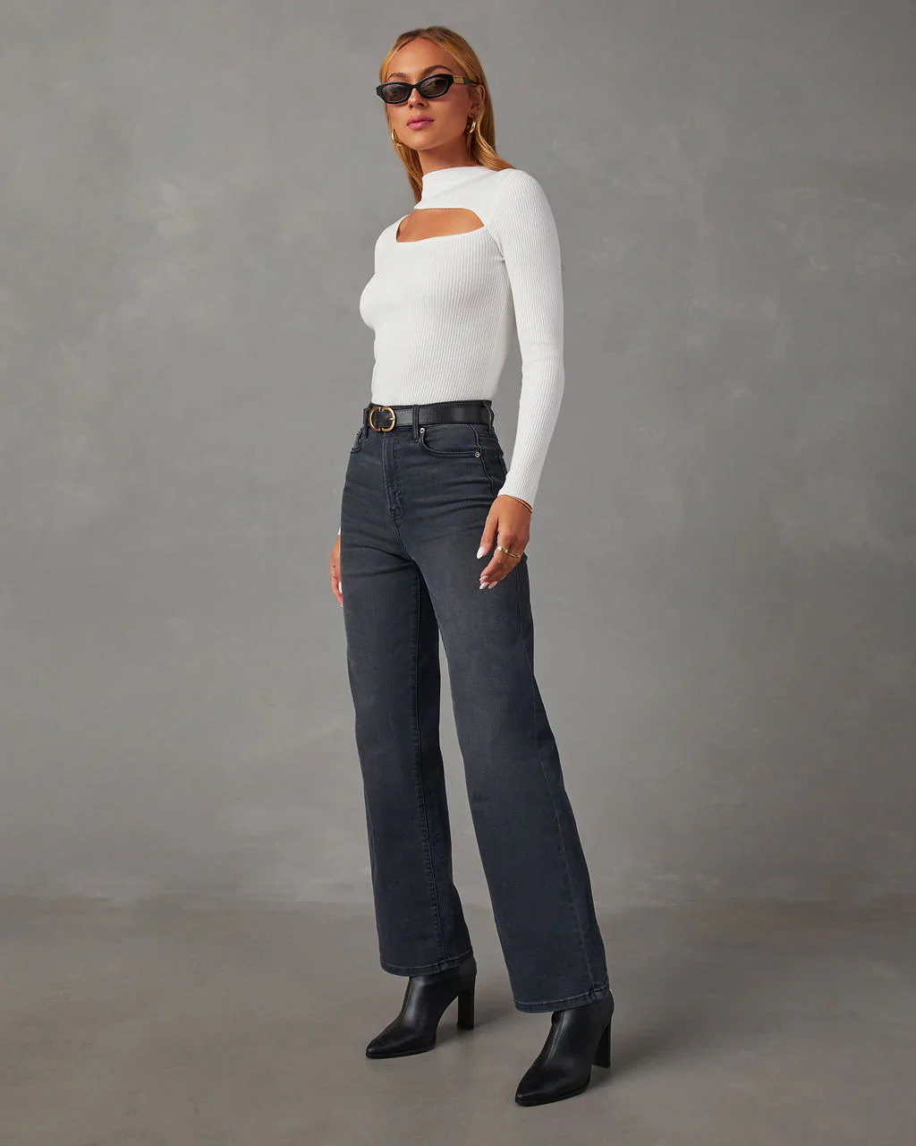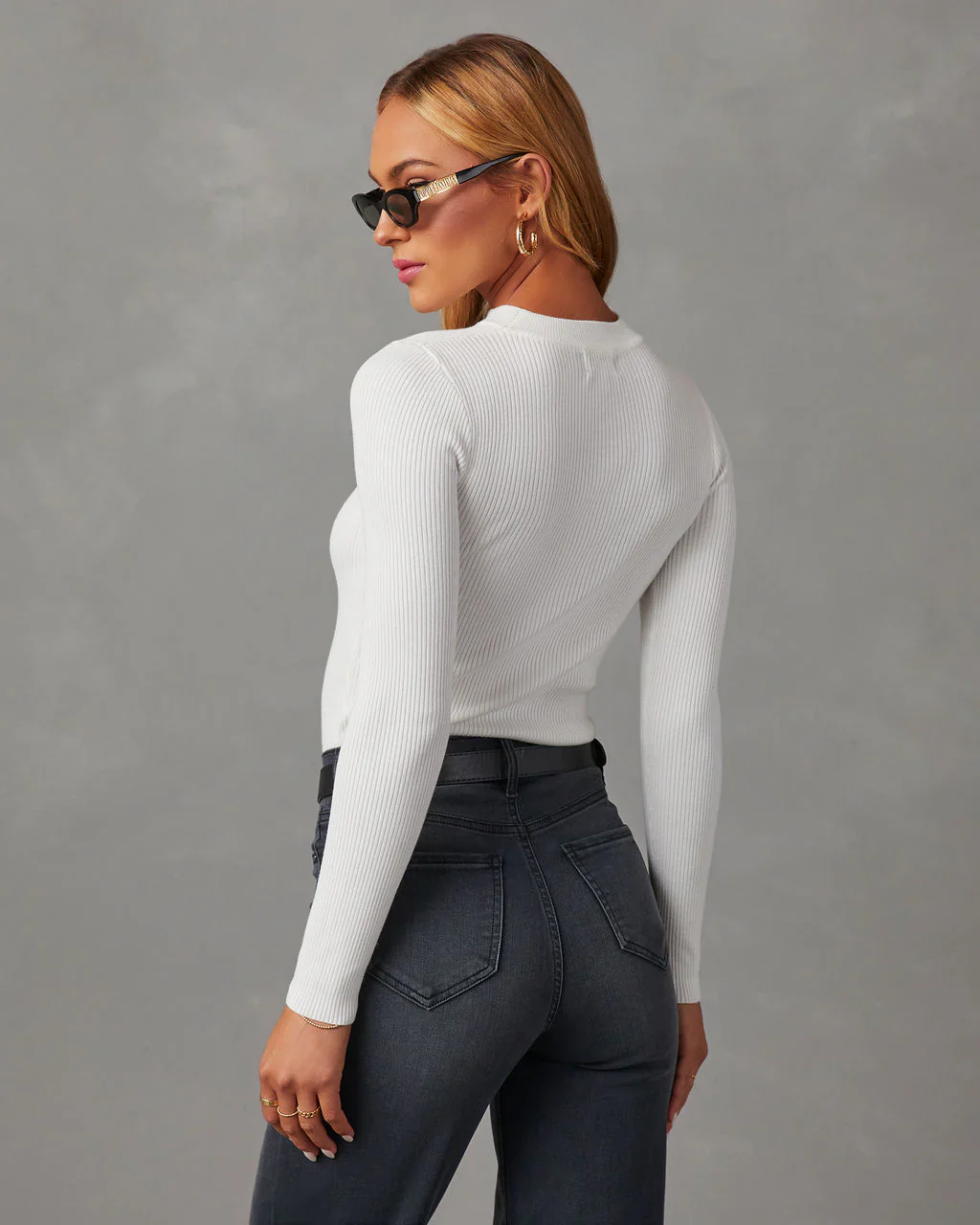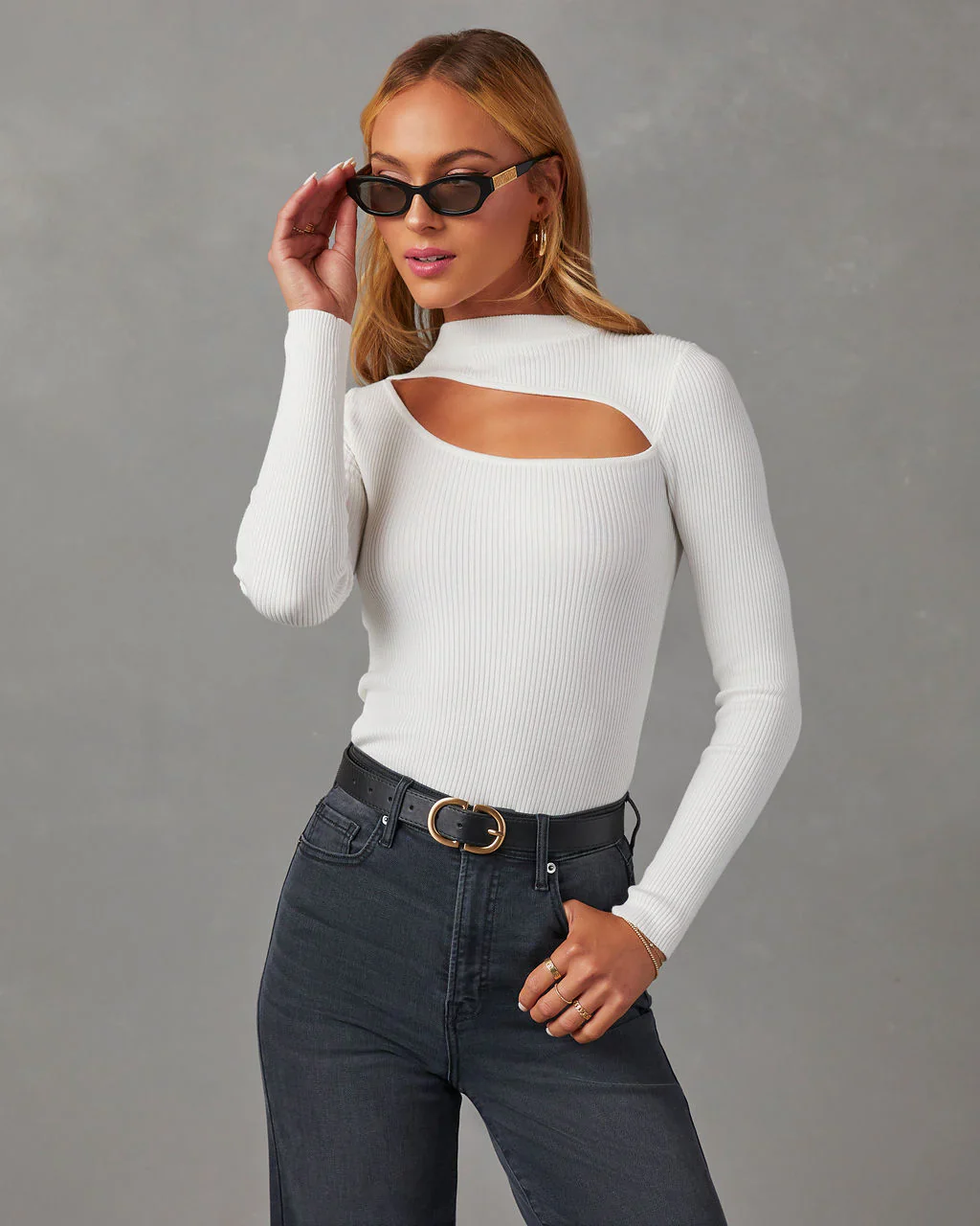 Stefanie Cutout Ribbed Knit Long Sleeve Top