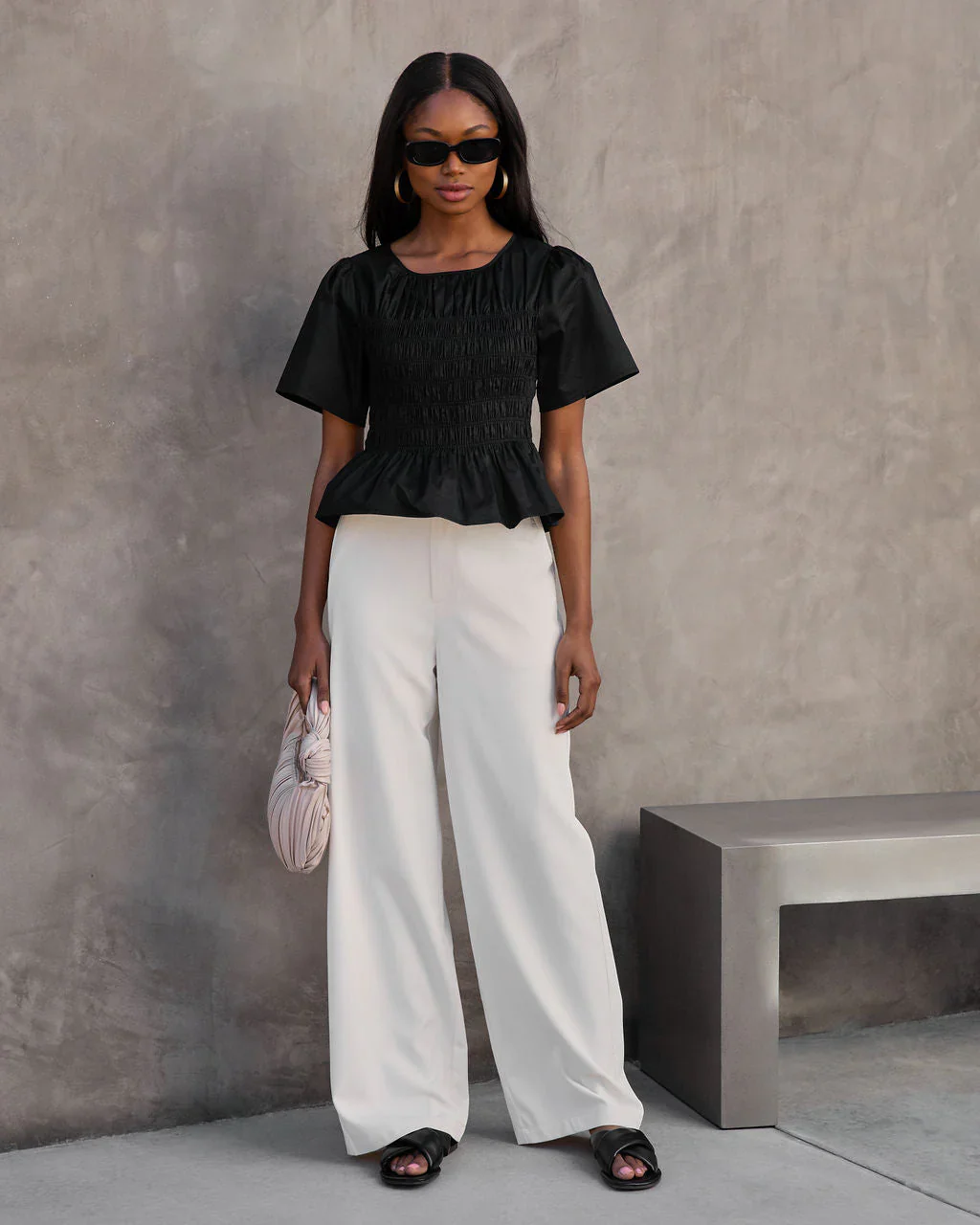 Josephine Cotton Crochet Knit Flutter Sleeve Top