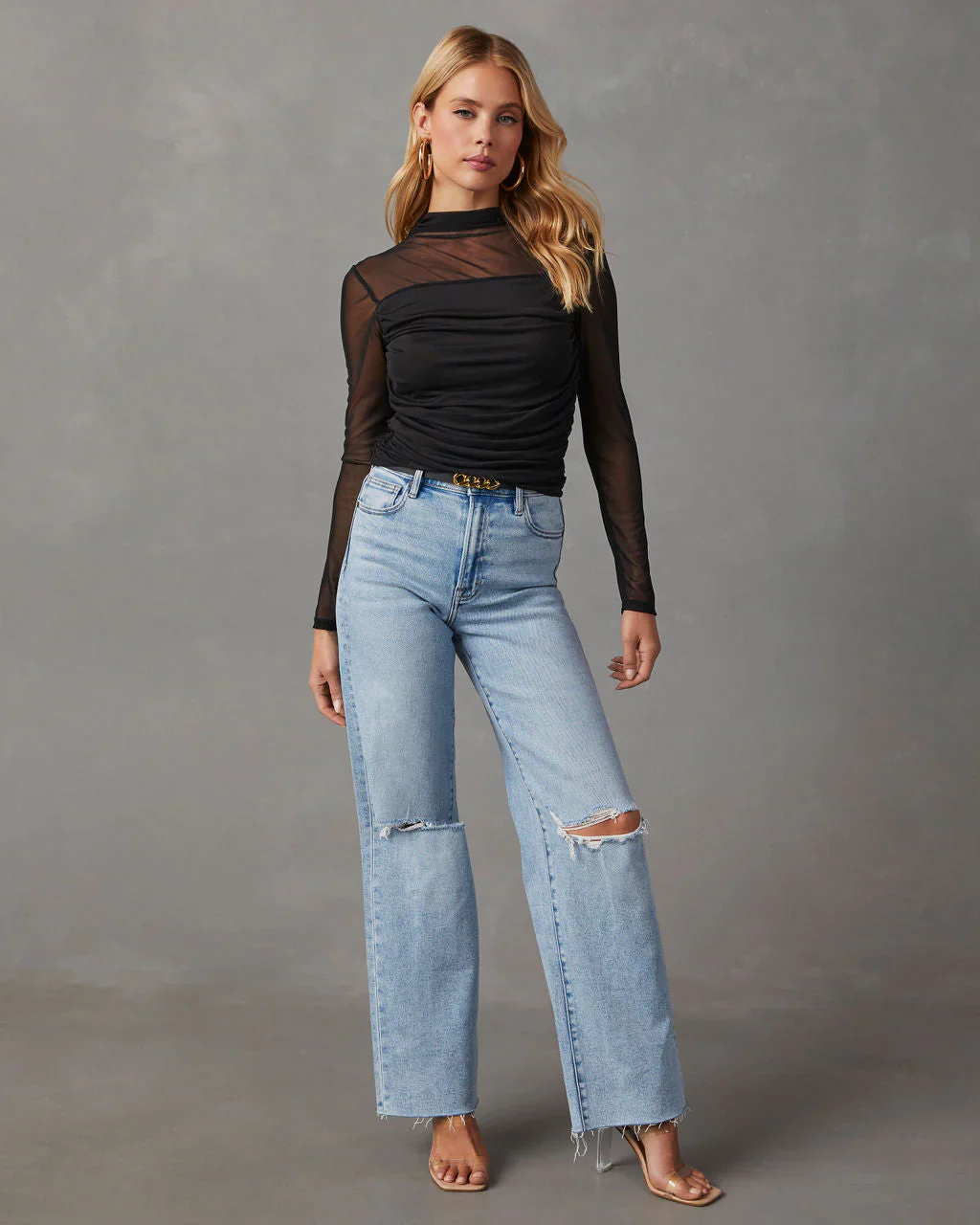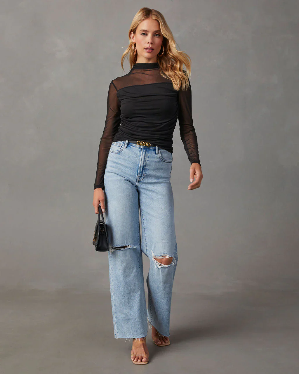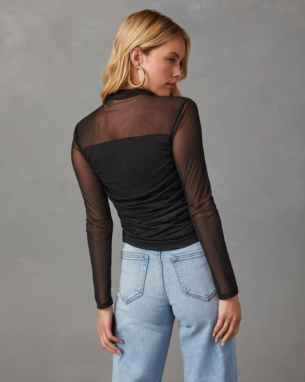 Bonjour Mon Amour Tulle Polka Dot Button Down Top