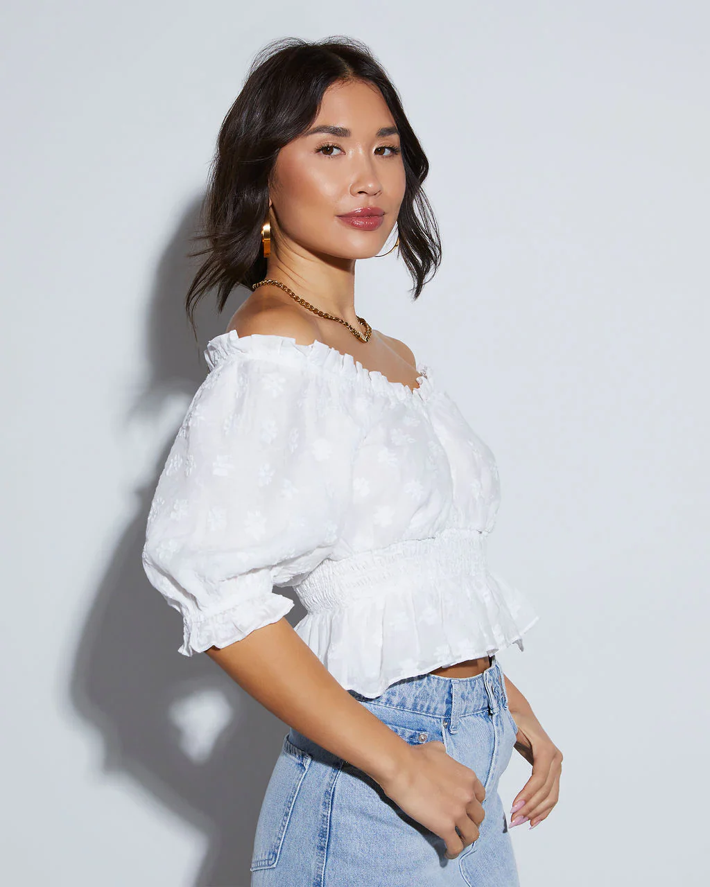 Ever So Sweet Floral Textured Puff Sleeve Peplum Top